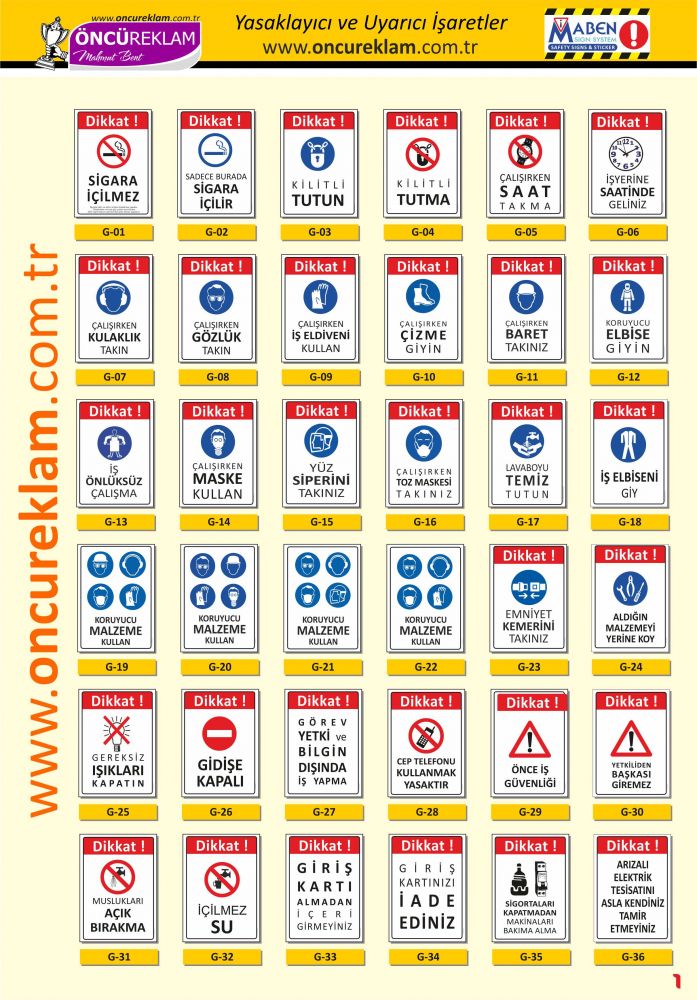 1-YASAKLAYICI VE UYARICI İŞARETLER