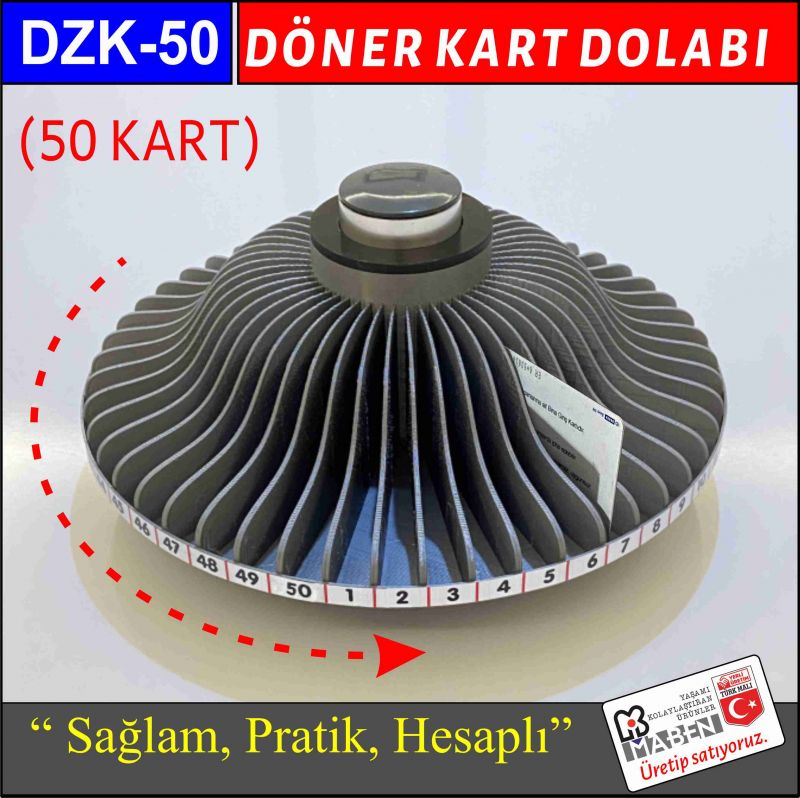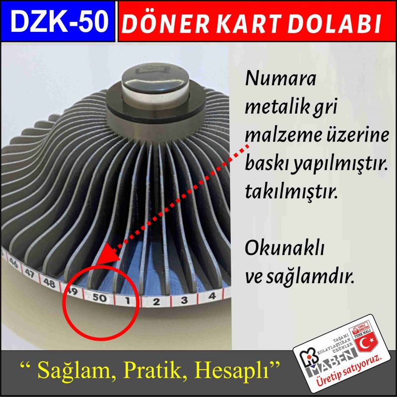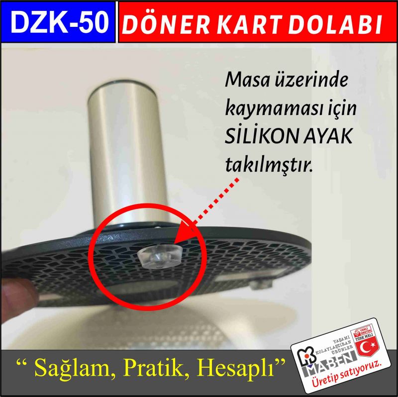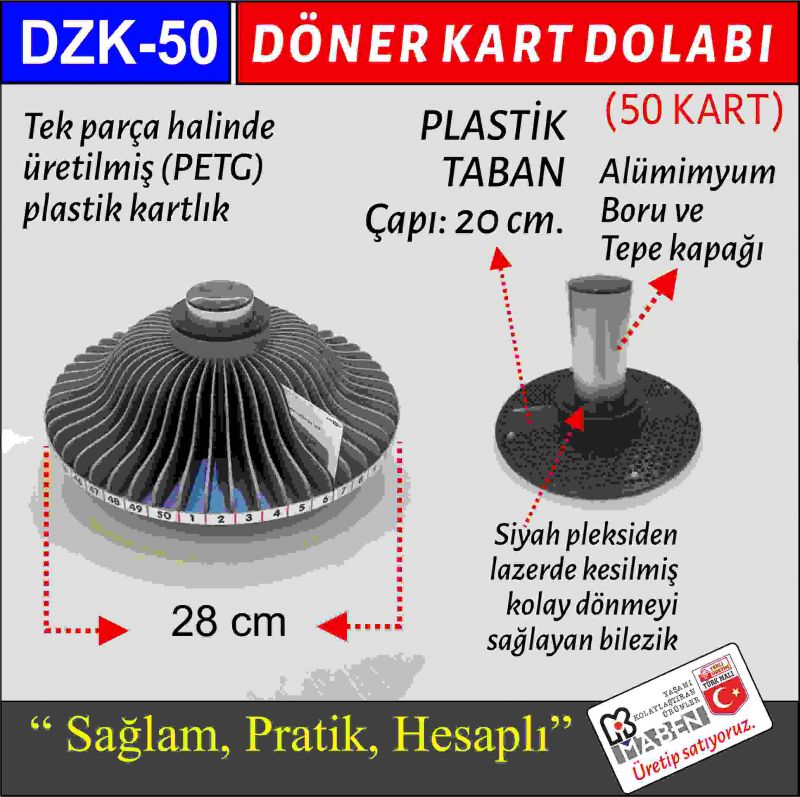 | Döner sistem 50 kartlık. Yekpare plastikten Metalik GRİ renkte üretilmiştir. Orta dikme ve tepelik Alüminyumdur.