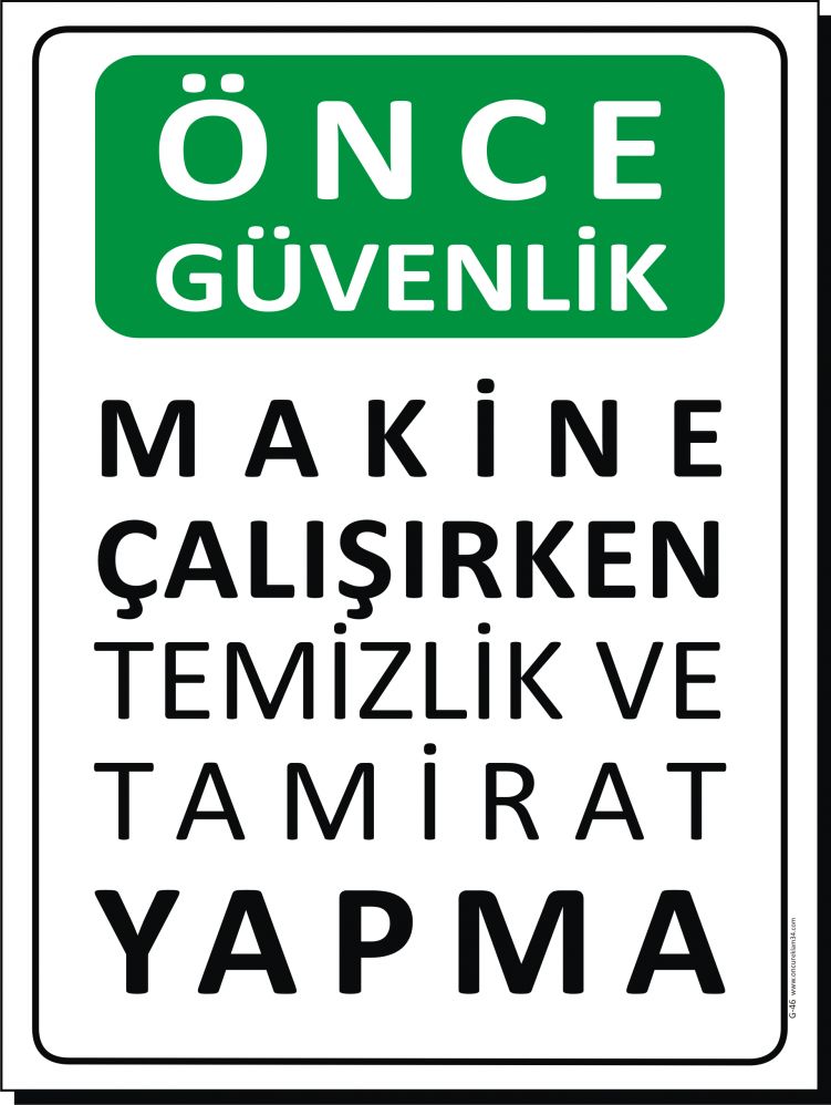 G-46 MAKİNA ÇALIŞIRKEN TEMİZLİK VE BAKIM YAPMAYIN.